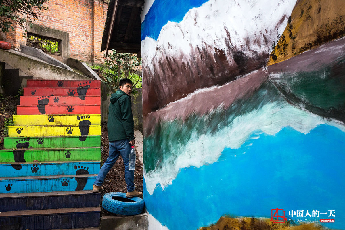 为了不留遗憾,欧洪明返回通麦天险继续骑行,他希望用车轮丈量318川藏线的每一寸土地。川藏线上的自然景观五彩斑斓,于是欧洪明用各色颜料来粉饰俱乐部。