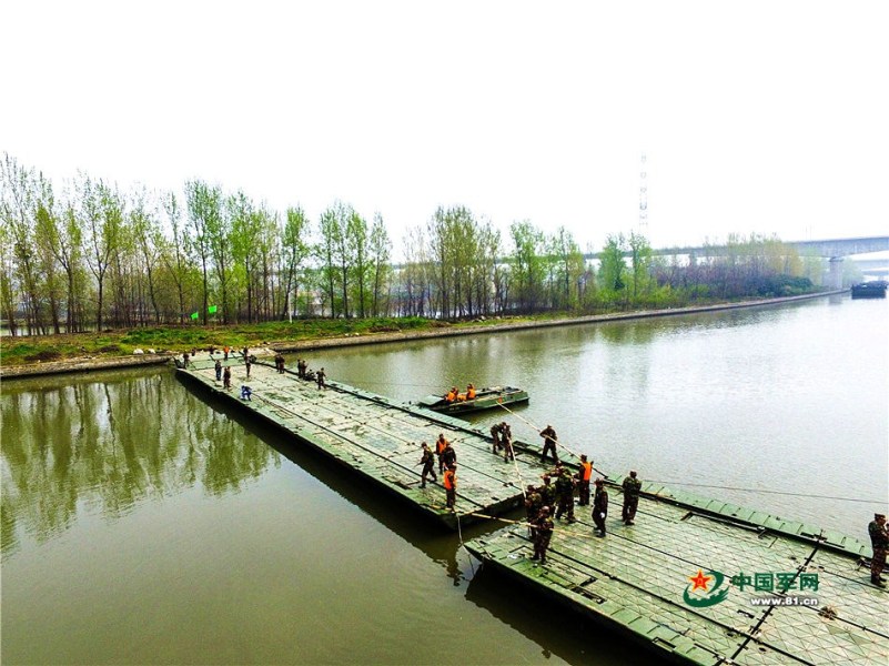 巨型积木这么玩:航拍京杭大运河浮桥架设