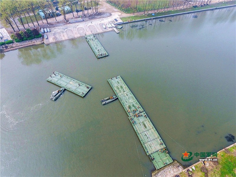 巨型积木这么玩:航拍京杭大运河浮桥架设