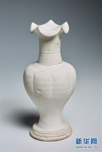 图为山西河津固镇宋金瓷窑址出土的素烧花口长颈瓶(资料照片)。新华社发