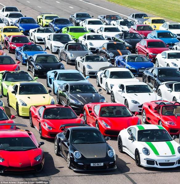 其它前排的车价值超过1500万英镑,包括法拉利F40、F50和Enzos,保时捷卡雷拉GT,保时捷 918Spyder,迈凯轮P1和捷豹XJR15。第三排是法拉利。在前排至少有25辆兰博基尼,30辆法拉利,24辆迈凯轮,34辆保时捷,20辆奥迪R8和14辆阿斯顿·马丁斯。