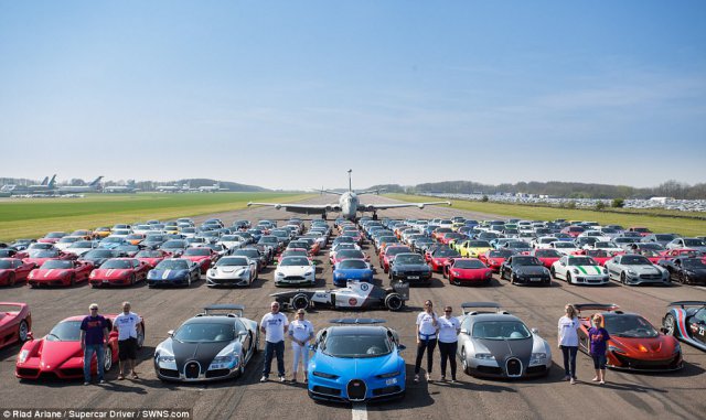 其它前排的车价值超过1500万英镑,包括法拉利F40、F50和Enzos,保时捷卡雷拉GT,保时捷 918Spyder,迈凯轮P1和捷豹XJR15。第三排是法拉利。在前排至少有25辆兰博基尼,30辆法拉利,24辆迈凯轮,34辆保时捷,20辆奥迪R8和14辆阿斯顿·马丁斯。