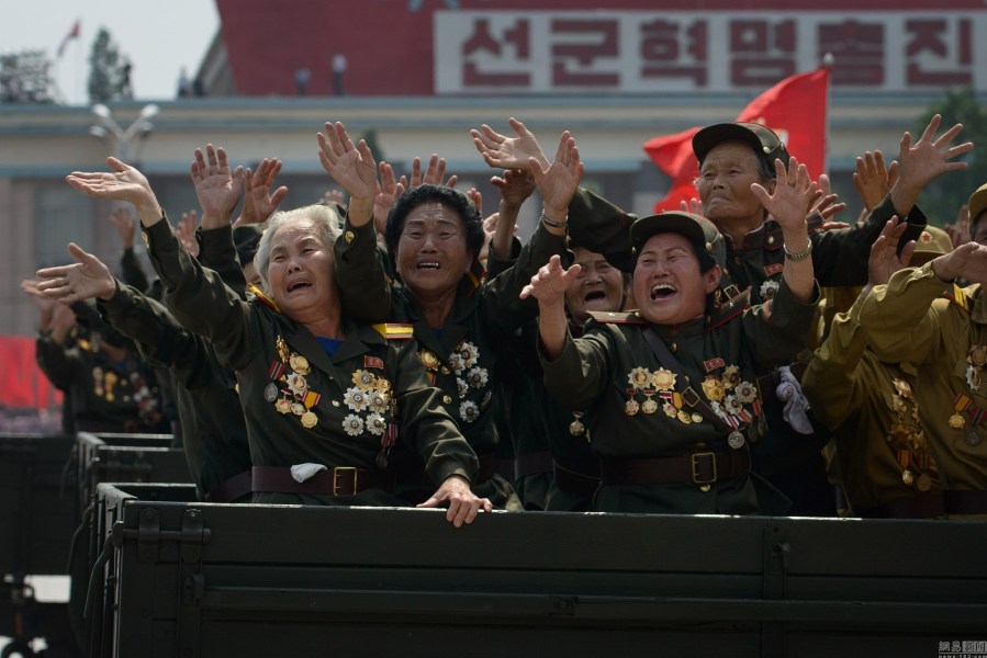 当地时间2013年7月27日,朝鲜平壤,朝鲜领导人金正恩观看阅兵,纪念朝鲜战争停战60周年。