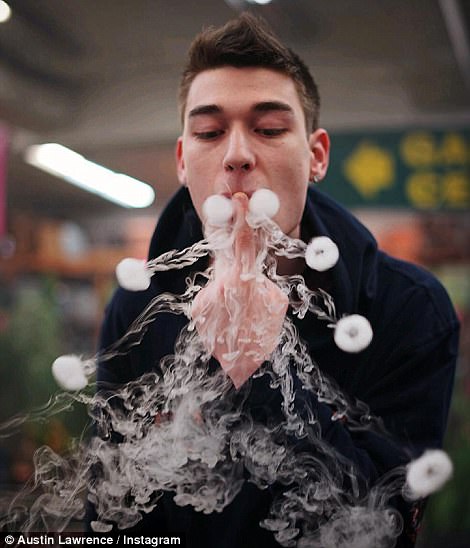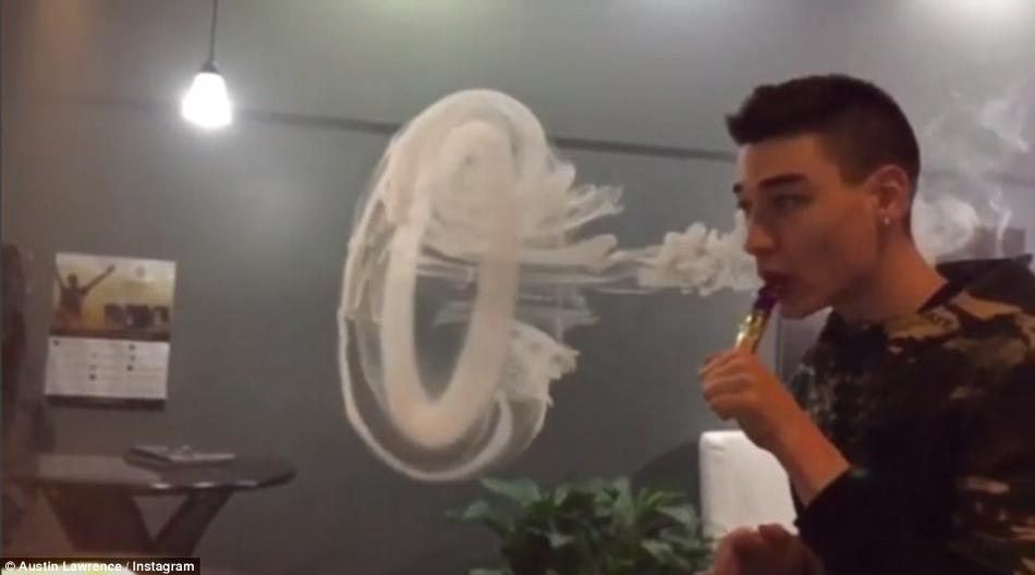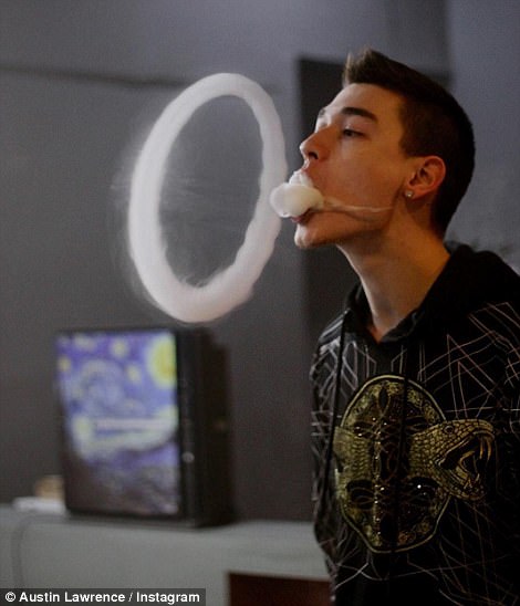 Austin在3年前戒了烟,开始使用电子烟,并玩出各种各样的造型,现在他发布在网上的视频点击量已经超过140万。他还访问了说唱歌手Drake,并且在Drake的豪宅中,教了他如何吹烟圈。