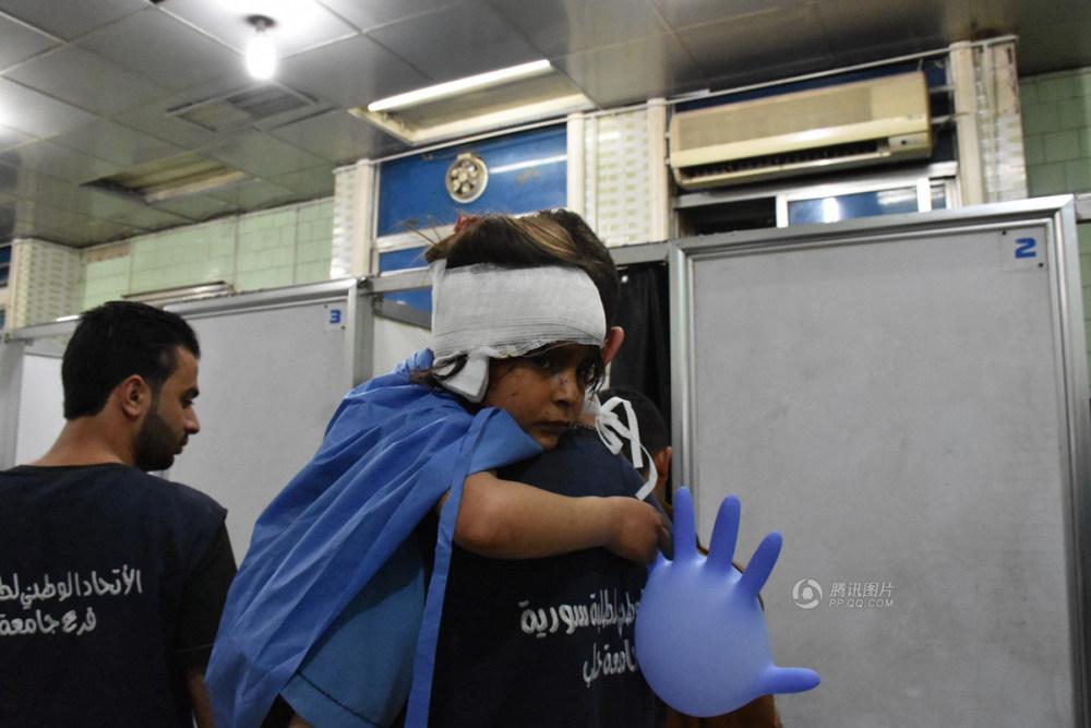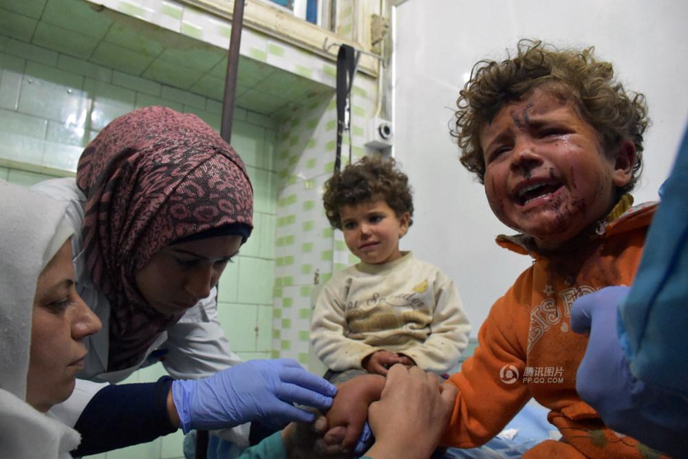 这起事件造成至少126人丧生,其中至少有109人是撤离者,包括68名儿童。图为在爆炸中受伤的孩子。