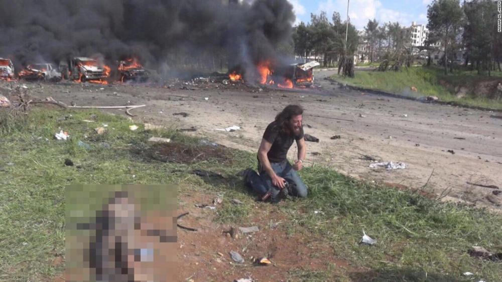 叙利亚摄影师爆炸现场飞奔抢救儿童 跪地痛哭