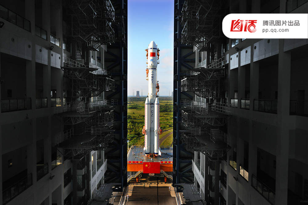 2017年4月17日,我国自主研制的首艘货运飞船天舟一号与长征七号遥二运载火箭等飞行产品完成总装测试等技术区各项工作,垂直转运至发射区,计划4月20日至24日择机发射。孙浩/视觉中国