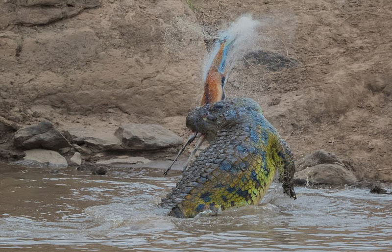 近日,加拿大野生动物摄影师杰弗里(Jeffrey Wu)在肯尼亚马萨伊马拉国家自然保护区内捕捉到了一条巨鳄在水中猎食两只羚羊的惊人一幕。