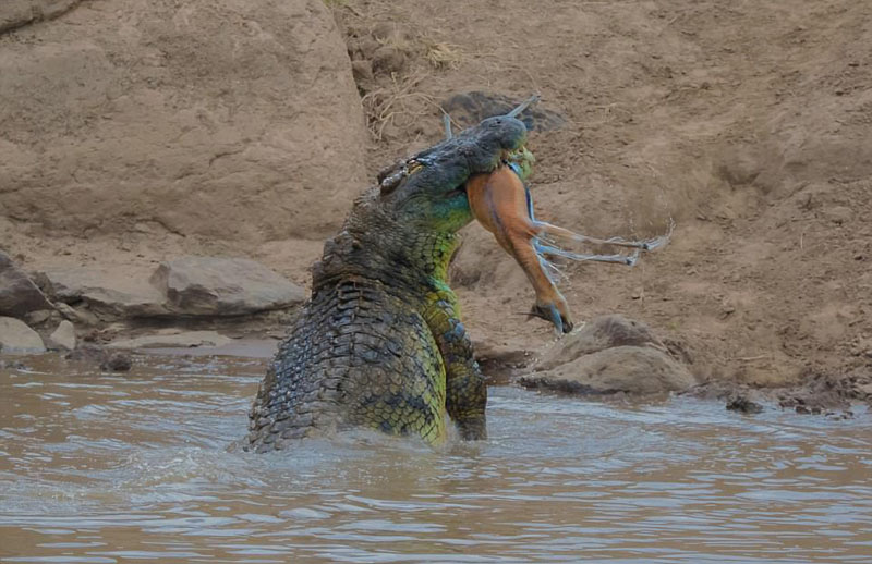 惊人一幕!肯尼亚巨鳄水中霸气猎食两羚羊