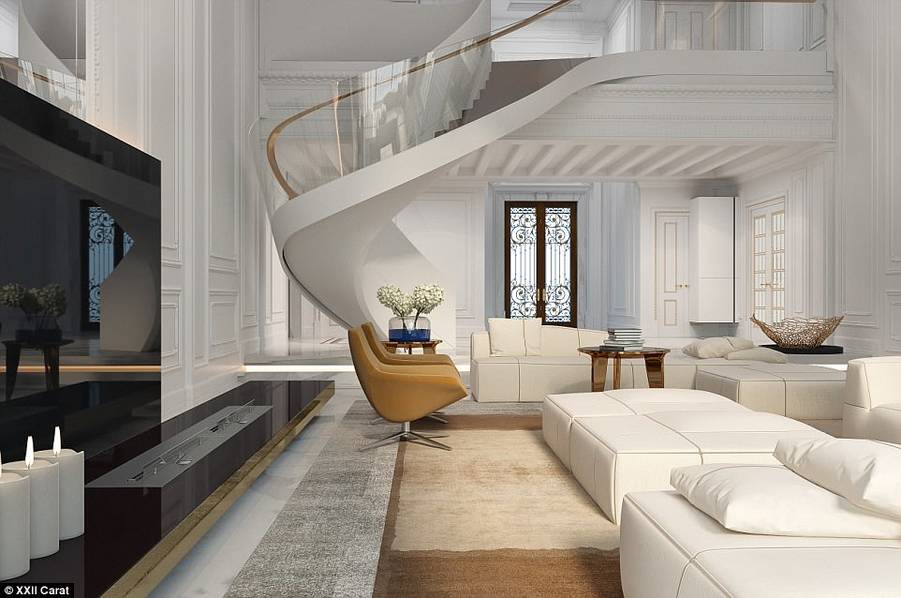 浴缸的原石来自于亚马逊丛林,这些没有打造过的石头重1000千克,从南美洲运到中东。