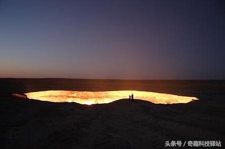 1、土库曼斯坦达尔瓦扎天然气坑洞 1971年,地质学家发现该区域蕴藏着大量的地下天然气,在常年的开采过程中,由于不慎出现钻探环状坍塌,从而形成了一个非常大的坑洞。为了防止有毒气体溢出,土库曼斯坦政府允许对坑洞中的天然气进行燃烧,这个坑洞从白天到晚上一直处于熊熊烈火燃烧状态。因此,这处燃烧的天然气坑洞也被人们称为“地狱之门”.