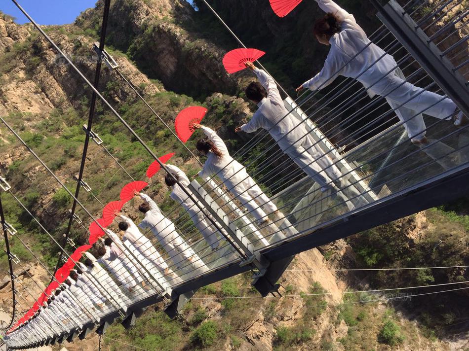 “云端”玻璃栈道全长168米,海拔高达200余米,跨度2米,玻璃净宽2米,堪称华北区域内最长、最险、最惊心、落差最大的玻璃栈道。图文/达明