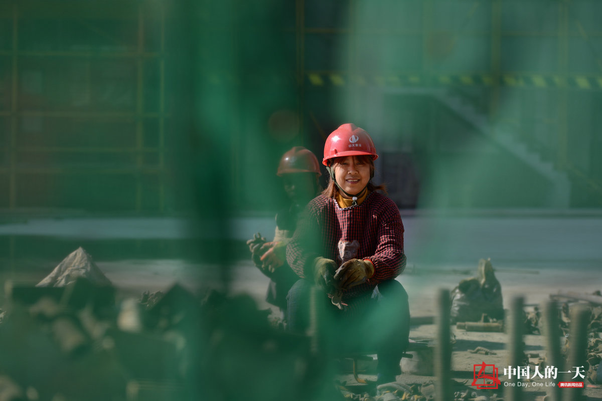 焦守碧,48岁,在工地上装卸脚手架,丈夫在附近开三轮车帮人拉货。她已经在老家县城为儿子买好房子,最近催着儿子结婚。“抓紧结婚生娃,有了孙子,我就回家带带,不用在这里打工啦。”她说。