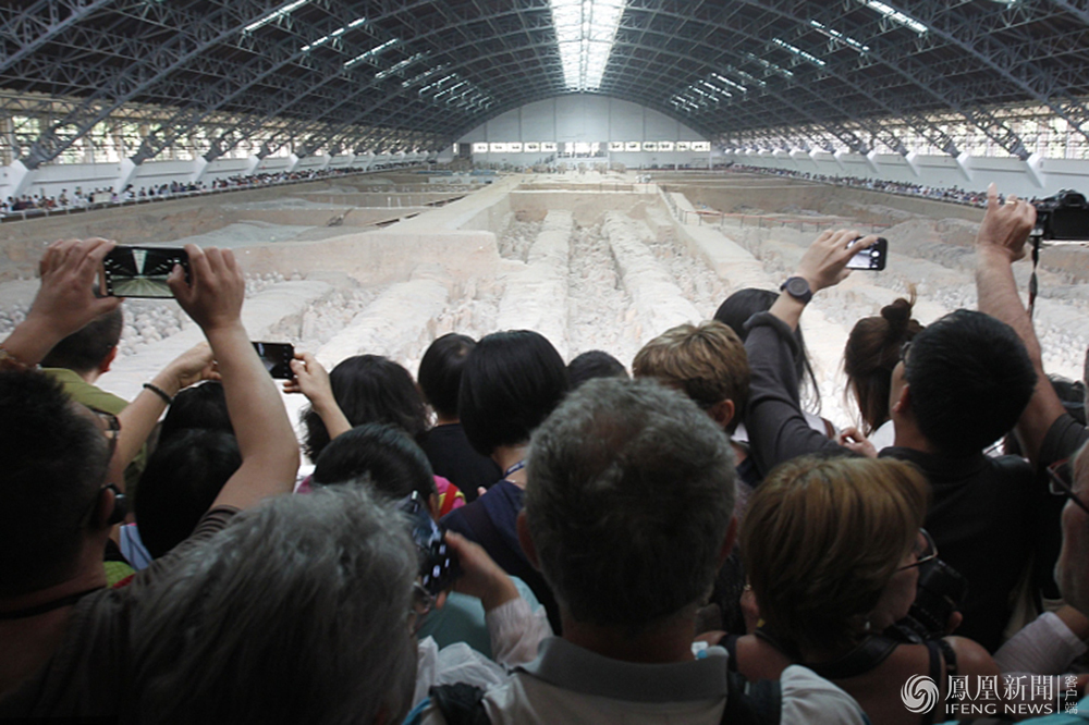 4月30日,西安临潼区兵马俑博物馆,据了解,29号秦始皇帝陵博物院接待游客四万多人,比去年五一增长了13%。图为兵马俑博物馆再迎“五一”观俑人海。