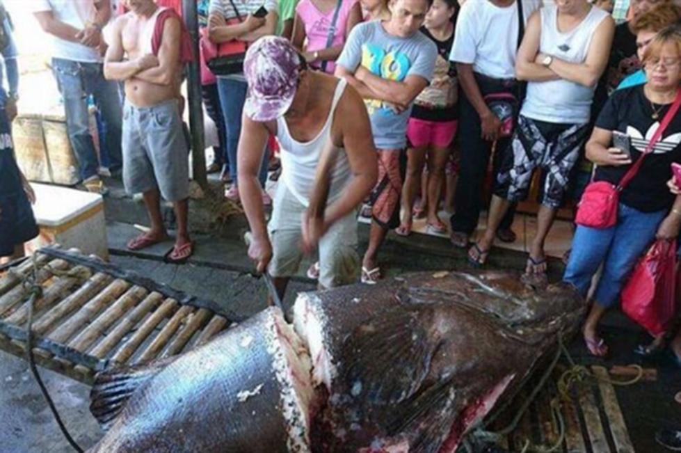 据外媒报道称,菲律宾渔民Arnold Constantino在当地时间4月25日从海上打回一条长2.1米、重400斤的巨型石斑鱼。