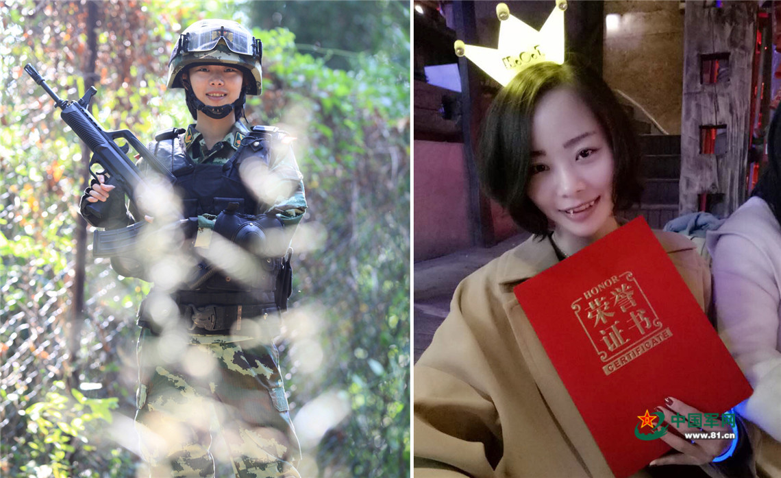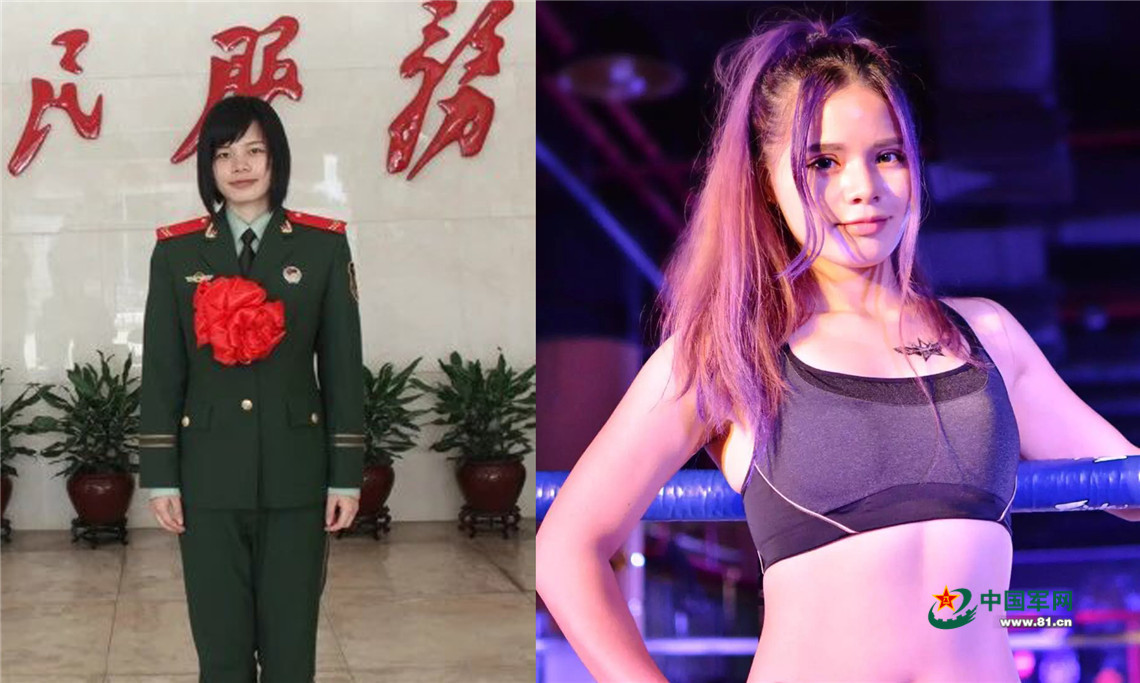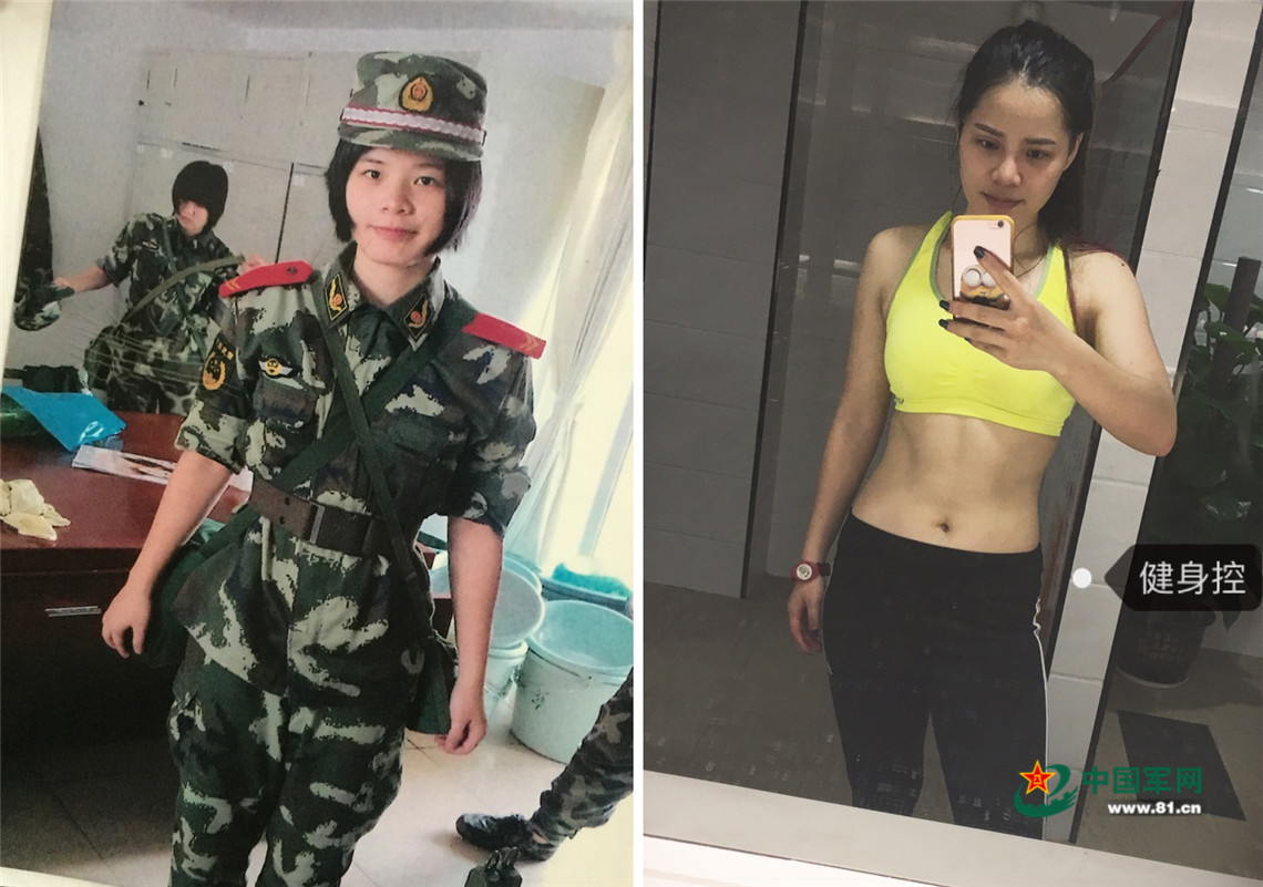 “90后”广东姑娘曾佩妍当兵时和退伍后(拼版图片)。