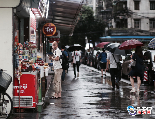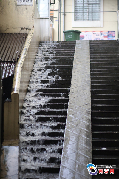 广州多地遭受强降雨。罗斌豪摄(拍摄地点:东湖地铁站附近)