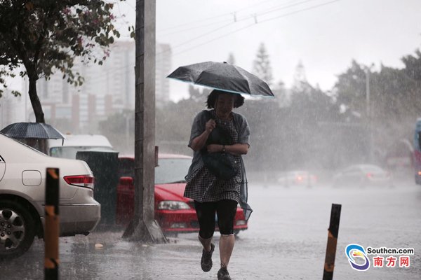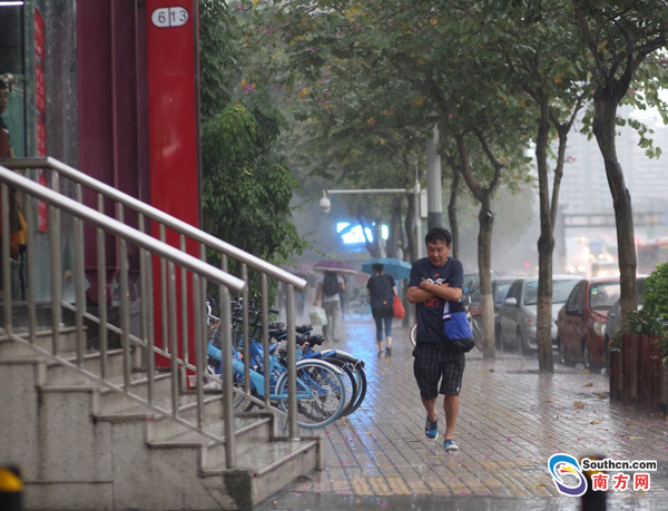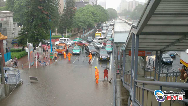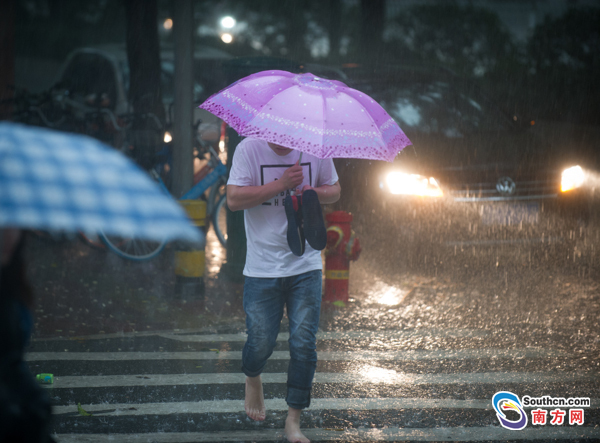 广州多地遭受强降雨。张梓望摄(拍摄地点:环市东路动物园南门天桥)