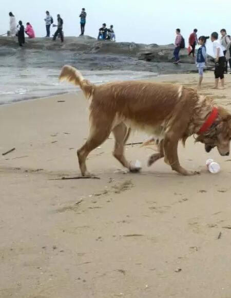 厦门一只可爱的金毛犬叫“老虎”,今年8岁了,你绝对想不到她在厦门海边捡了5年的垃圾。