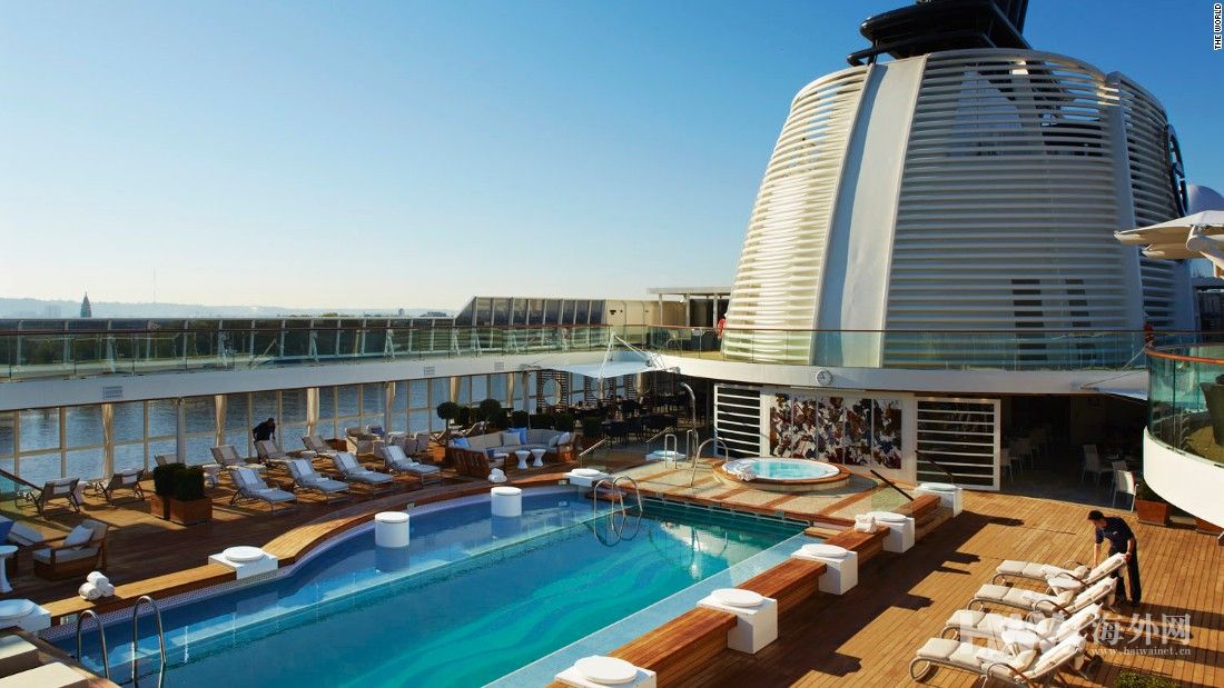 游轮总经理说,平均而言,大多数居民每年在船上呆大约六个月,在国际海域航行。