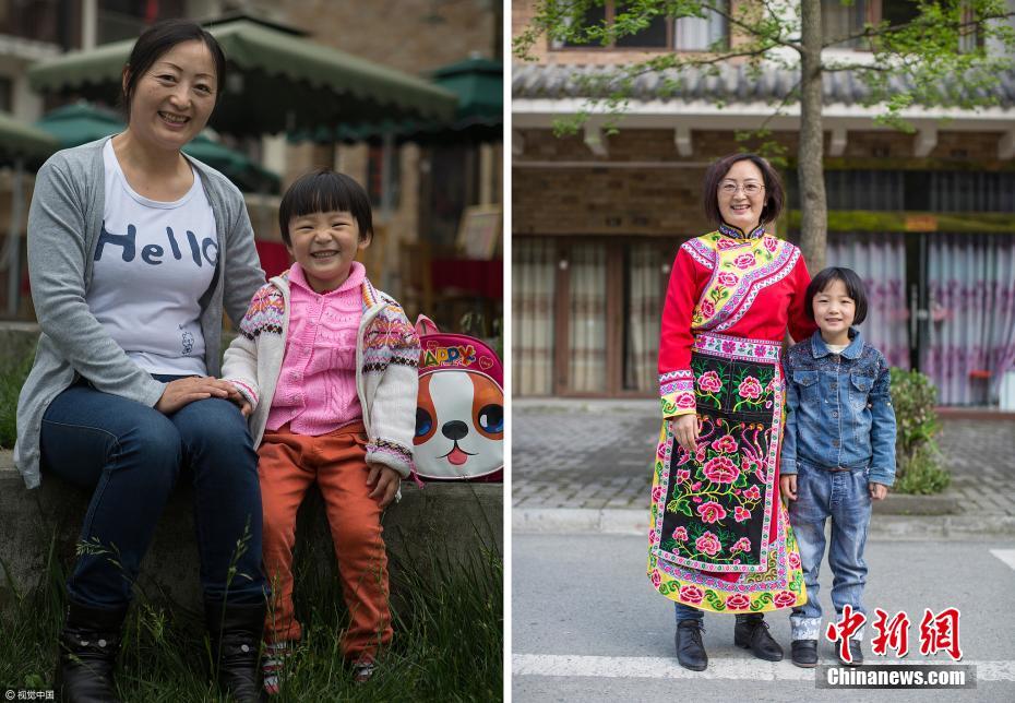 陈秀蓉在地震中失去一个女儿。每天上午八点半,身为导游的陈秀蓉就会换上漂亮的羌族服饰,来到高速路口等待旅游团的到来,她的职业是一名导游。每每有游客询问地震对她的影响,她的眼泪就会忍不住流下来。如今,小女儿徐瑊玏已经7岁,乖巧可爱,邻居都说她和姐姐长得很像,连陈秀蓉自己有时也会有错觉,仿佛大女儿又回到了自己的身边。(所有组图中左图拍摄于2013年,右图拍摄于2017年)图片来源:视觉中国