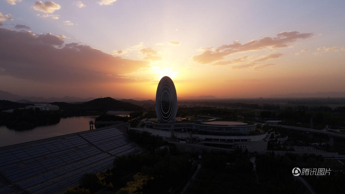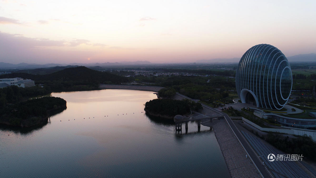 这是怀柔雁栖湖畔的日出东方凯宾斯基酒店(5月6日摄)。新华社记者 邢广利 摄