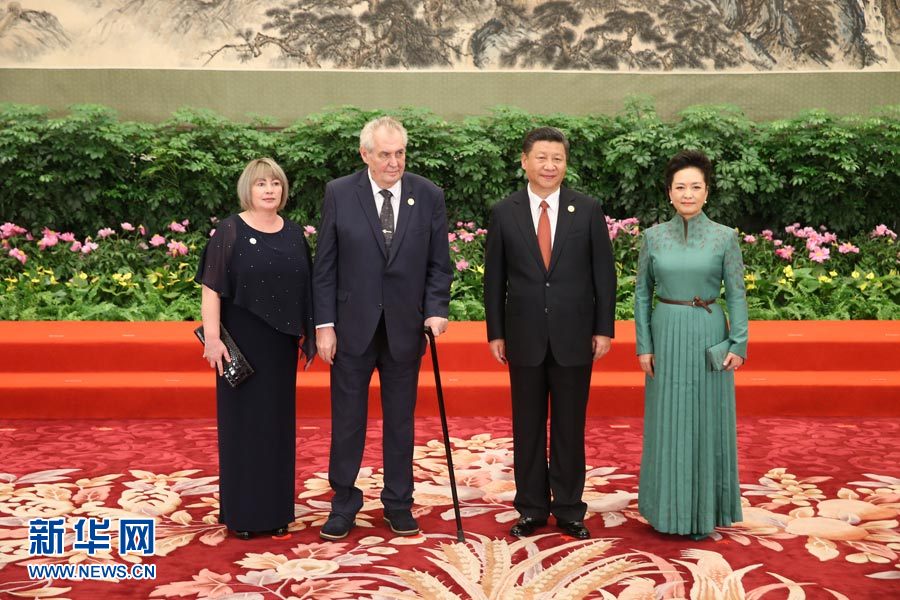 5月14日,国家主席习近平在北京人民大会堂举行宴会,欢迎出席“一带一路”国际合作高峰论坛的外方代表团团长及嘉宾。这是习近平和夫人彭丽媛迎候捷克总统泽曼和夫人。新华社记者 姚大伟 摄
