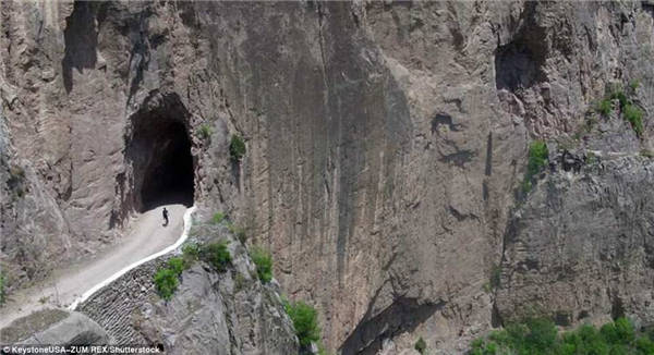 这条路的长度约为10公里,在太行绝壁之上连凿了5个山洞,最上面的洞和最下面的洞落差约有200米,坡度在30度以上。