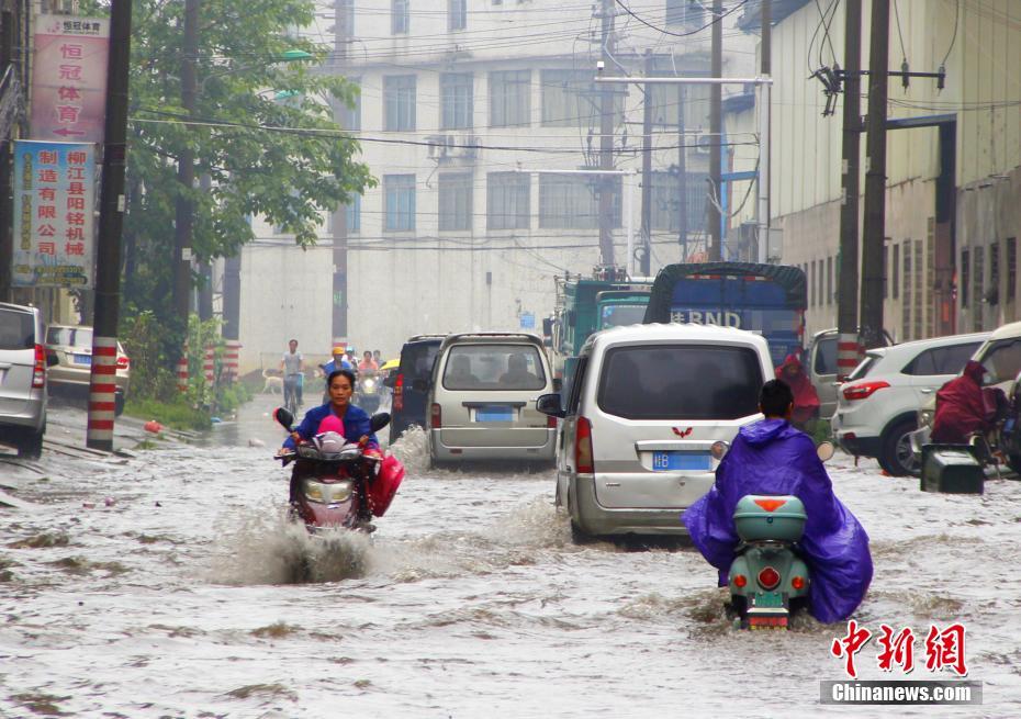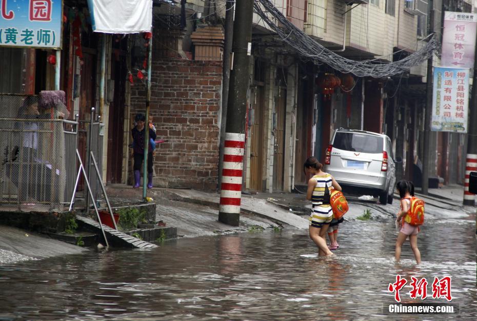 5月14日夜间至15日清晨,广西遭暴雨侵袭,柳州市柳江区拉堡镇利国路路段内涝严重,街道似河流一般,民众需淌水出行。当地水利部门发布消息称,15日8时前的12小时内,该市共有69个乡镇(地区)遭遇暴雨、大暴雨袭击,这是今年以来该市出现暴雨、大暴雨量最多的一次。朱柳融 摄