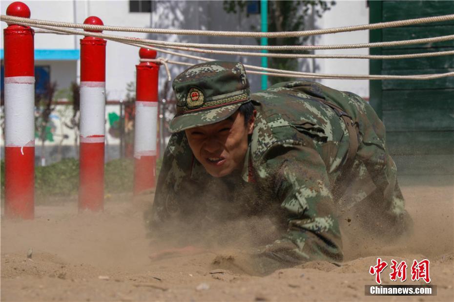 通过低桩网的战士,已经无暇顾及嘴里的尘土和泥沙。 李靠军摄