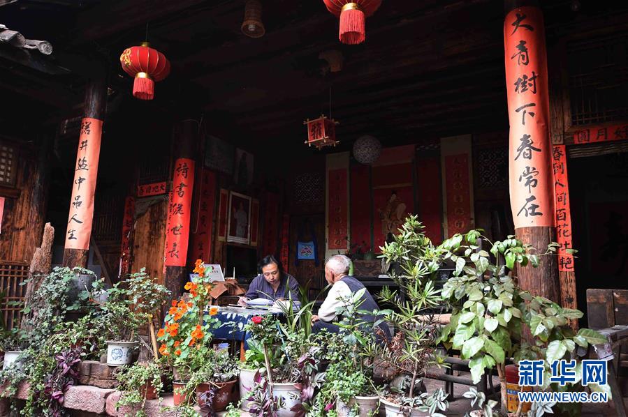 云南云龙县诺邓古村村民在四合院中休息(5月13日摄)。新华社记者杨宗友摄