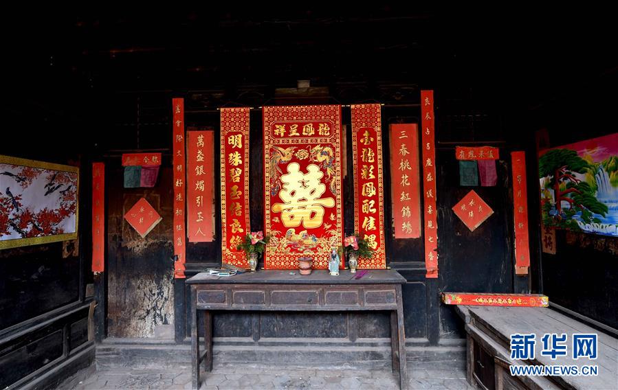 这是云南云龙县诺邓古村一户人家喜庆的屋内装饰(5月14日摄)。新华社记者杨宗友摄