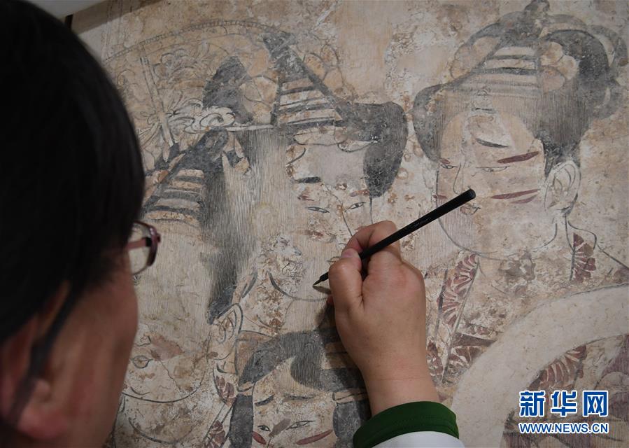 河南洛阳古代艺术博物馆位于洛阳市邙山之上,在这里,除了有众多古代壁画和彩绘砖雕外,还有技法超群的“壁画整容师”。白大褂是他们的工作服,针筒、镊子、小刀等是他们的工具,为壁画“做手术”是他们的日常工作。古代壁画或藏于地下墓葬,或存于庙堂、石窟内,湿度、温度等自然因素会让壁画出现空鼓、起甲等病害,壁画修复师就是通过娴熟的技艺为它们“治病续命”。壁画从揭取到修复完成,要经历清理、碎块加固、拼接、表面缺失填补等十余道工序,是一个漫长的过程。修复工作不仅需要丰富的知识和娴熟的技法,更要有极大的耐心,不允许有丝毫失误,通常一天下来,只能修复巴掌大的一块,而根据壁画的大小和保护程度,修复一幅完整的壁画需要数月甚至几年的时间。河南洛阳古代艺术博物馆壁画修复中心有18名工作人员,他们除了修复、维护馆内展示的壁画外,还曾应邀到新疆龟兹石窟、重庆大足石刻等地进行壁画修复。新华社记者李安 摄