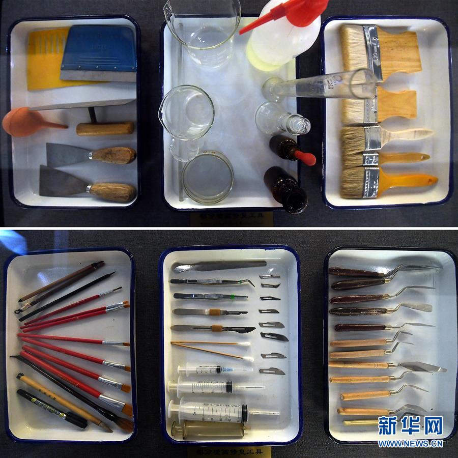 这是壁画修复师使用的部分工具(拼版照片,5月16日摄)。新华社记者 李安 摄