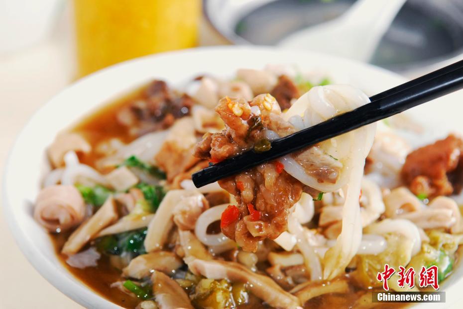 米粉是中国特色小吃,大米经过浸泡、蒸煮和压条,变成质地柔韧、富有弹性的条状食物。在各地民众的加工下,又演变出各具特色不同风味的绝佳美食。图为海南小吃抱罗粉。王铭伟 摄 图片来源:CTPphoto