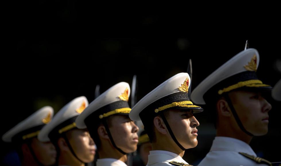 三军仪仗队30度高温下迎宾 纹丝不动