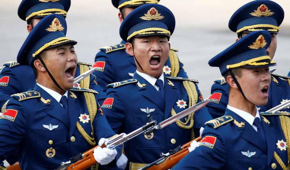 三军仪仗队30度高温下迎宾 纹丝不动