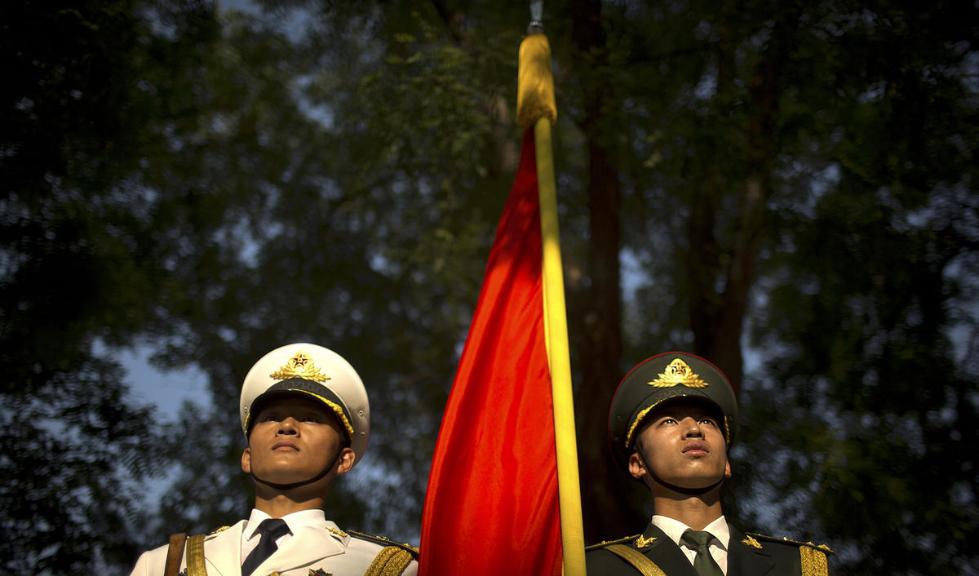 仪仗队士兵高温下岿然挺立。