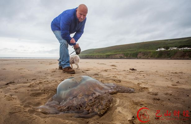 近日,英国南部海岸惊现一只近1米宽的巨型水母,当地居民担心大批水母夏天会聚集在附近海域,可能会被冲上沙滩。这只"搁浅"的水母可能是这片海域比较罕见的狮鬃水母。狮鬃水母是世界上体型最大的水母之一,其伞形躯体可达两米,重200公斤至400公斤,触手有八组,最多有150条,可长逾35米。