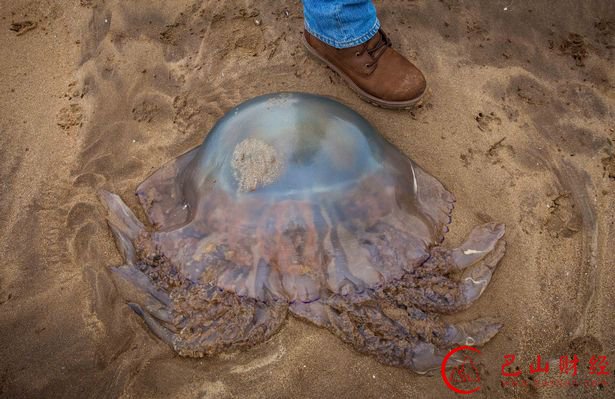 近日,英国南部海岸惊现一只近1米宽的巨型水母,当地居民担心大批水母夏天会聚集在附近海域,可能会被冲上沙滩。这只"搁浅"的水母可能是这片海域比较罕见的狮鬃水母。狮鬃水母是世界上体型最大的水母之一,其伞形躯体可达两米,重200公斤至400公斤,触手有八组,最多有150条,可长逾35米。