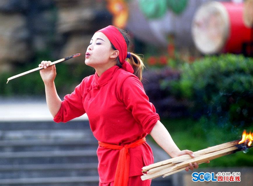 四川在线消息(记者衡昌辉摄)熊芳今年24岁,是古蔺县箭竹苗族乡团结村人,她从小就是男孩汉子性格一心想学祖传绝技,苗族“上刀山下火海”绝技,传统是传男不传女,随后她父亲对她说等你学习毕业后传给你,在她18岁时父亲教了她祖传绝技“火”一系列绝技,经过两年时间学习,现在她可以吃火、火和皮肤亲密接住等上刀山下火海绝技,。目前,村寨正在发展乡村旅游,她学到的“火”绝技有了用场,现在游客来到村寨旅游都要观看她精彩表演“火”的绝技。她表演绝技后正在香喷喷吃饭。