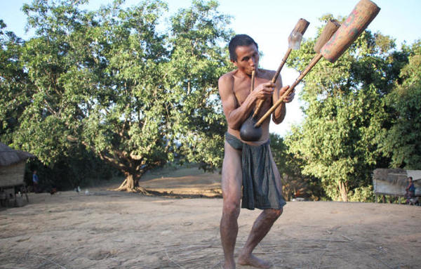 当村子里所有的成员聚集在一起后,他们会边唱歌边跳舞,然后用长矛杀死一头牛用来祭祀。
