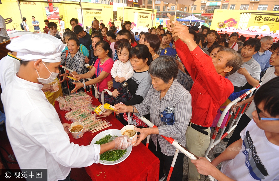 几张桌子拼成的配料台上,800斤米粉最能吸引围观市民的眼球。