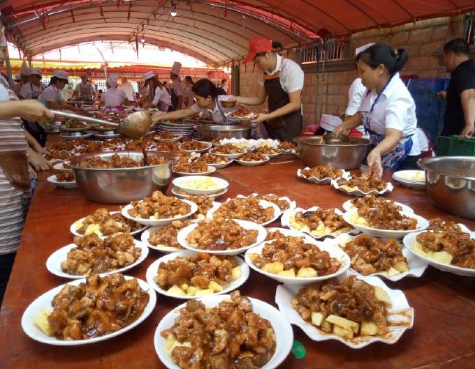 村民们吃得津津有味。