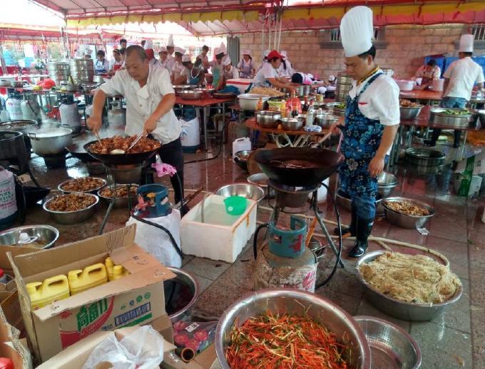 50人的厨师团队忙个不停。
