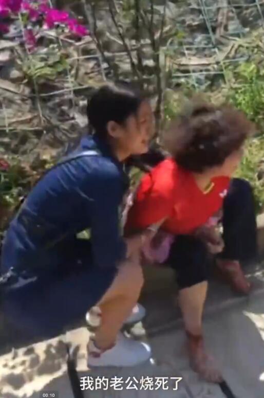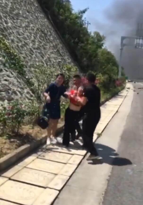 女子被路人拉住,眼睁睁看着着火的车子大哭