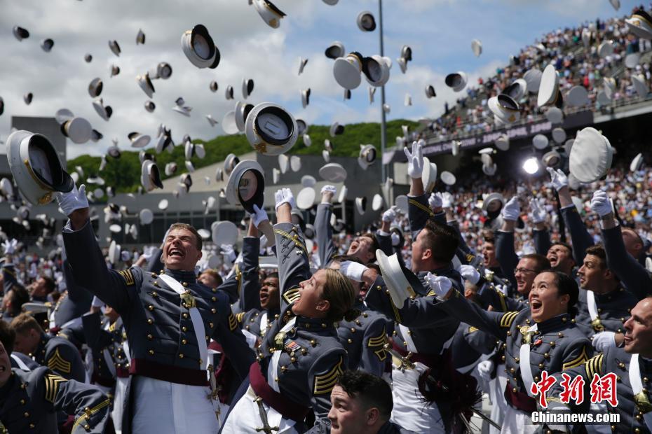 美国著名军事院校西点军校在位于纽约州西点镇的校园体育场举行2017届毕业生的毕业典礼。