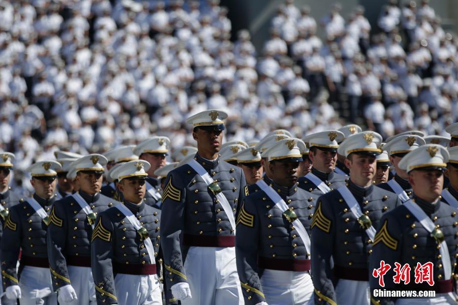 美国著名军事院校西点军校在位于纽约州西点镇的校园体育场举行2017届毕业生的毕业典礼。