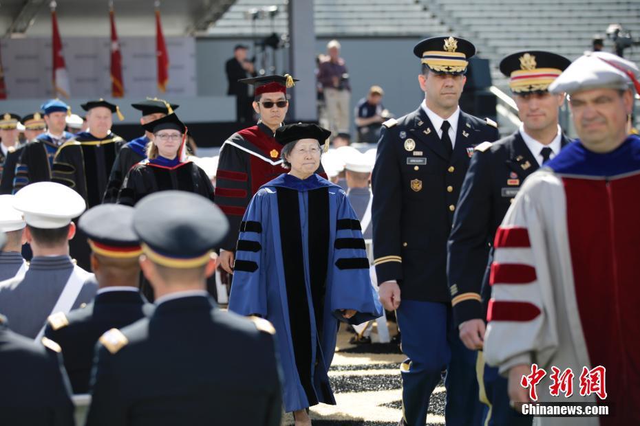 西点军校中文教授王蒞文(中)出席毕业典礼。
