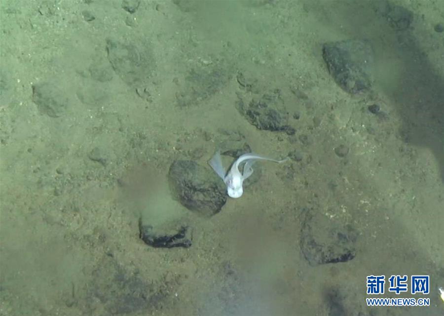 这是5月30日“蛟龙”号载人潜水器拍摄的狮子鱼在马里亚纳海沟游弋的画面。